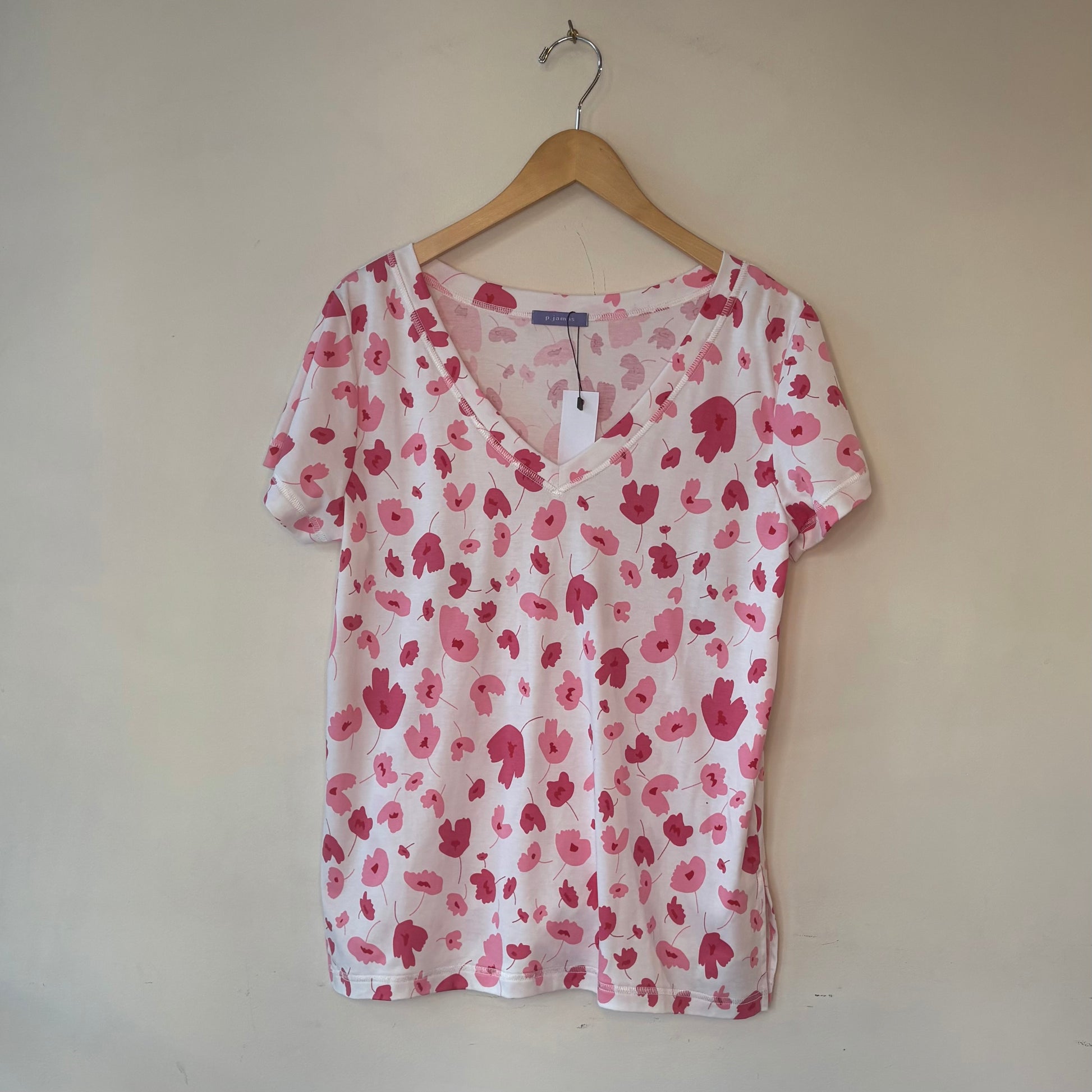 This classic v neck and boxer short set in the cutest poppy print is 100% Pima cotton. What's not to love?