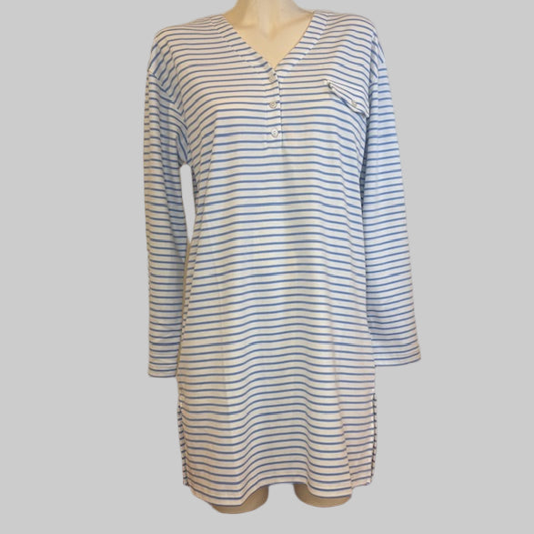 Pure Pima cotton interlock fabric that is yarn dyed, not printed! This night gown has a henley collar and pocket detail that you'll be sure to love.
