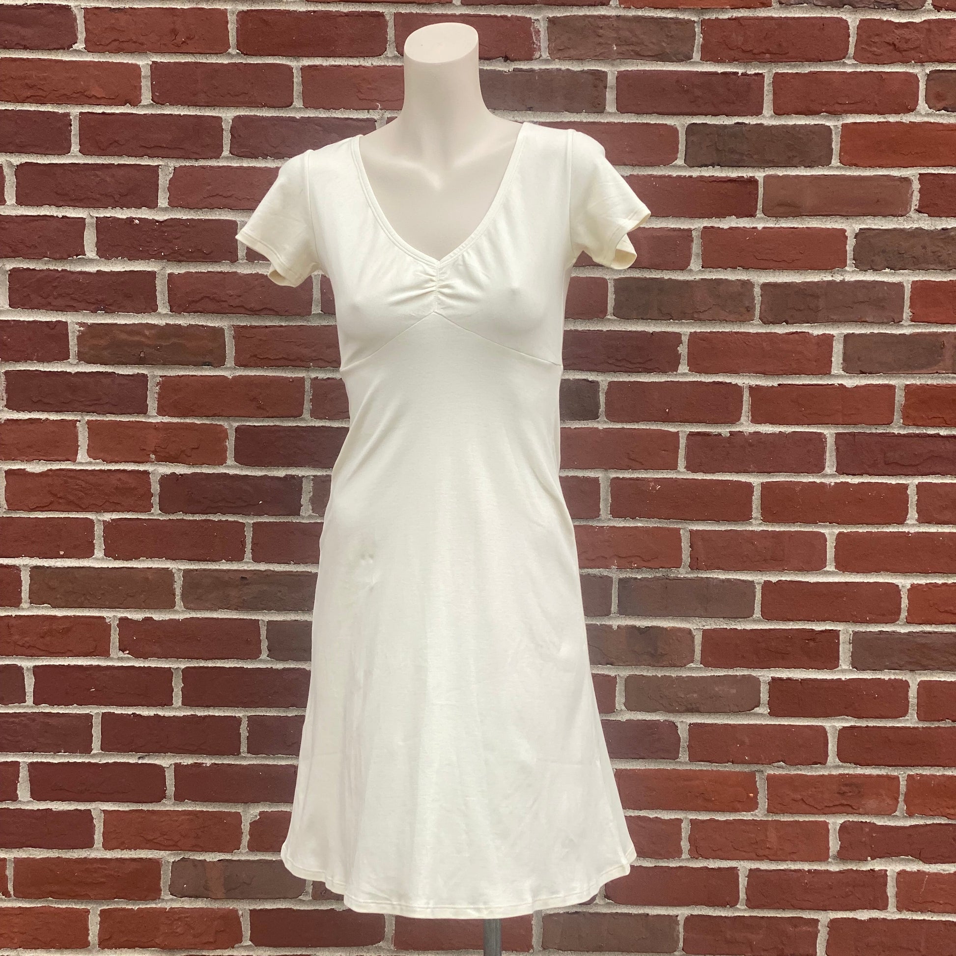 Sweet and playful 100% cotton gown with a gathered neckline and cap sleeve.