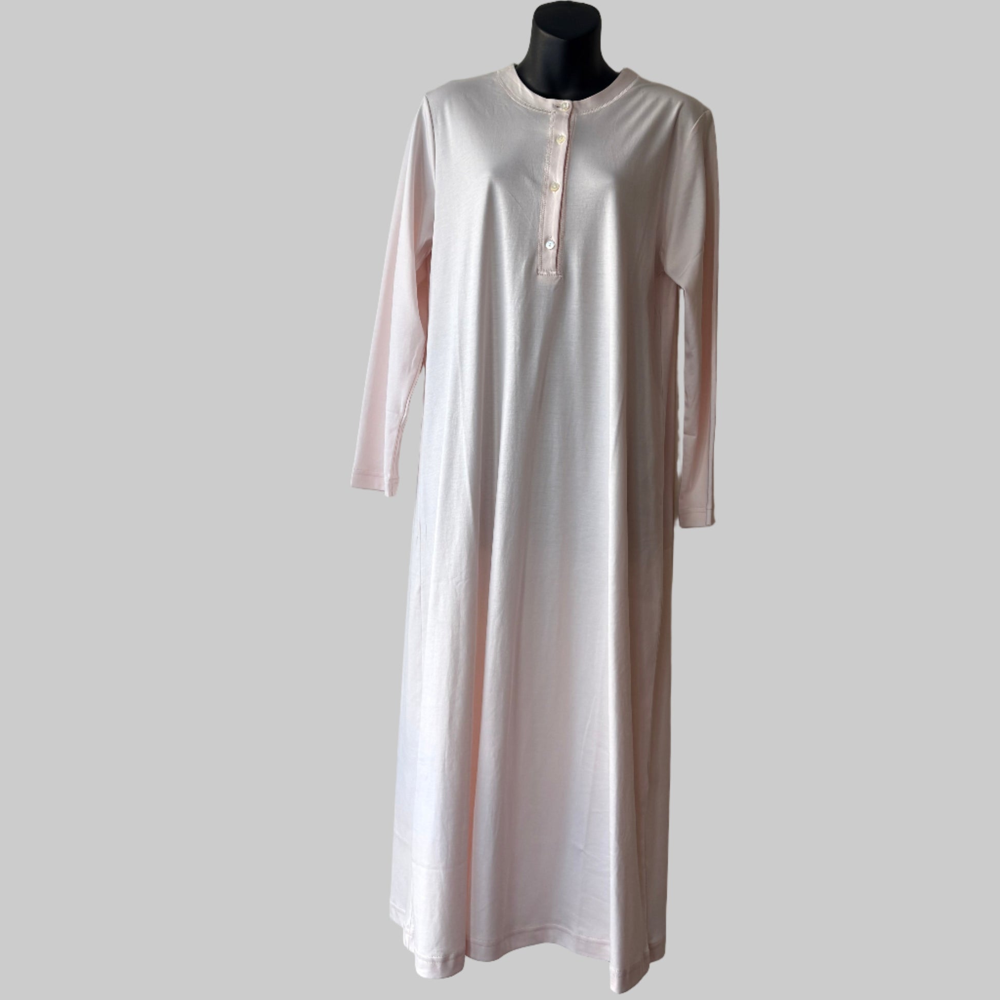 This is a classic long sleeve gown with a button Henley front made in soft butterknit cotton.