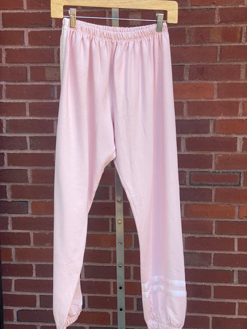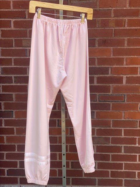 You will love PJ Harlow's Bethany joggers. These bottoms are made of the softest French terry with elastic waist band and cuffs. They also feature the stylish satin stripes on the leg,