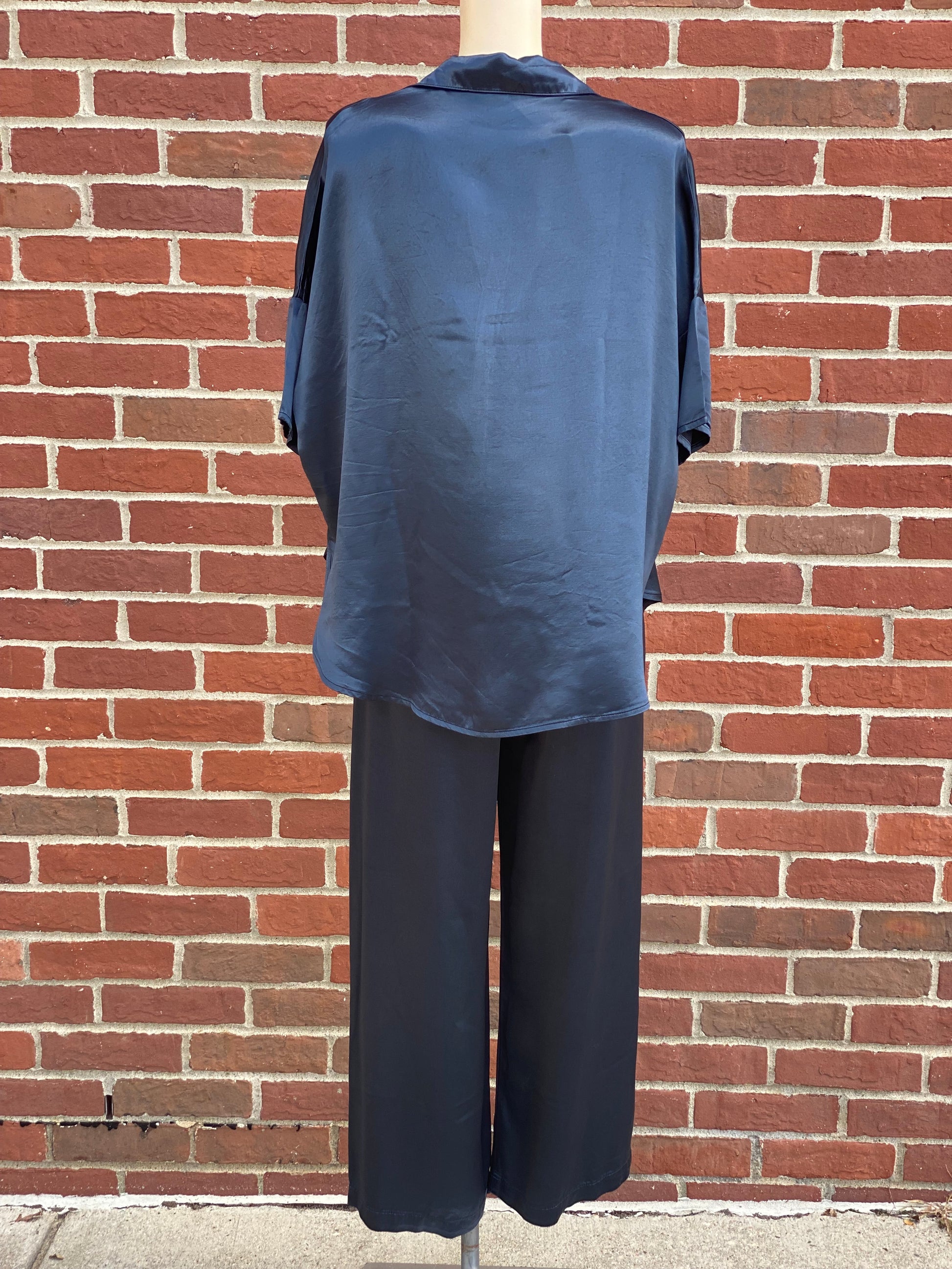 PJ Harlow's Fran top features a flowing silhouette and stylish collar. PJ Harlow's signature satin fabric will not disappoint. And as a added bonus - this piece is machine washable!