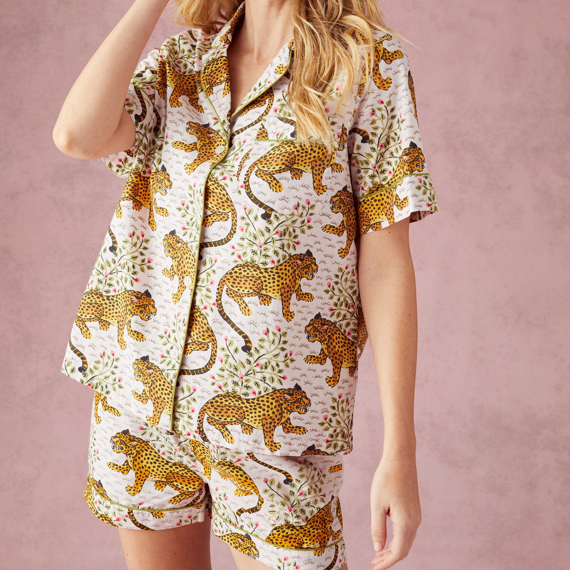 These 100% organic cotton pajamas feature PRINTFHRESH's signature tiger print. These PJs are breathable, light and so cute.