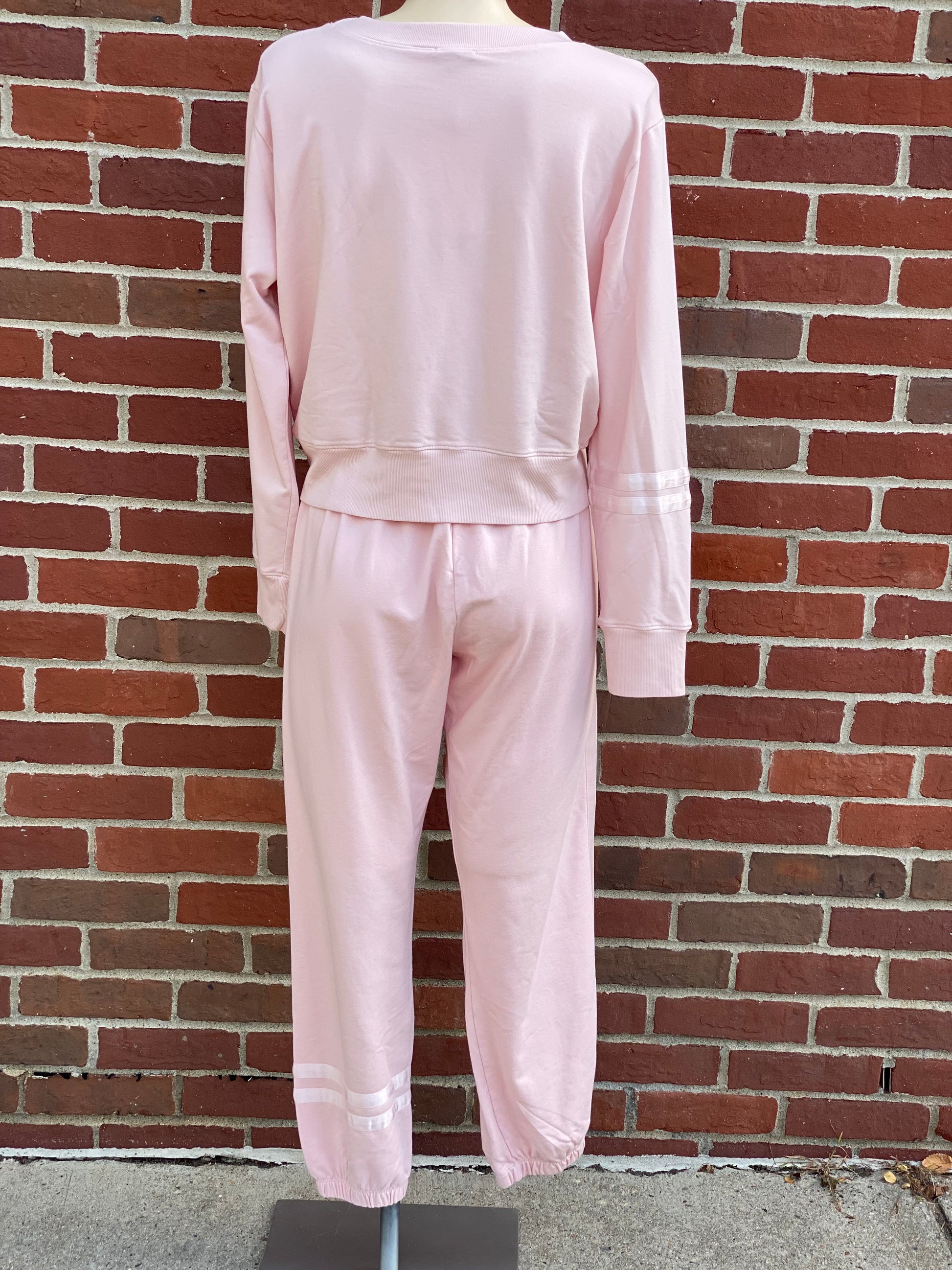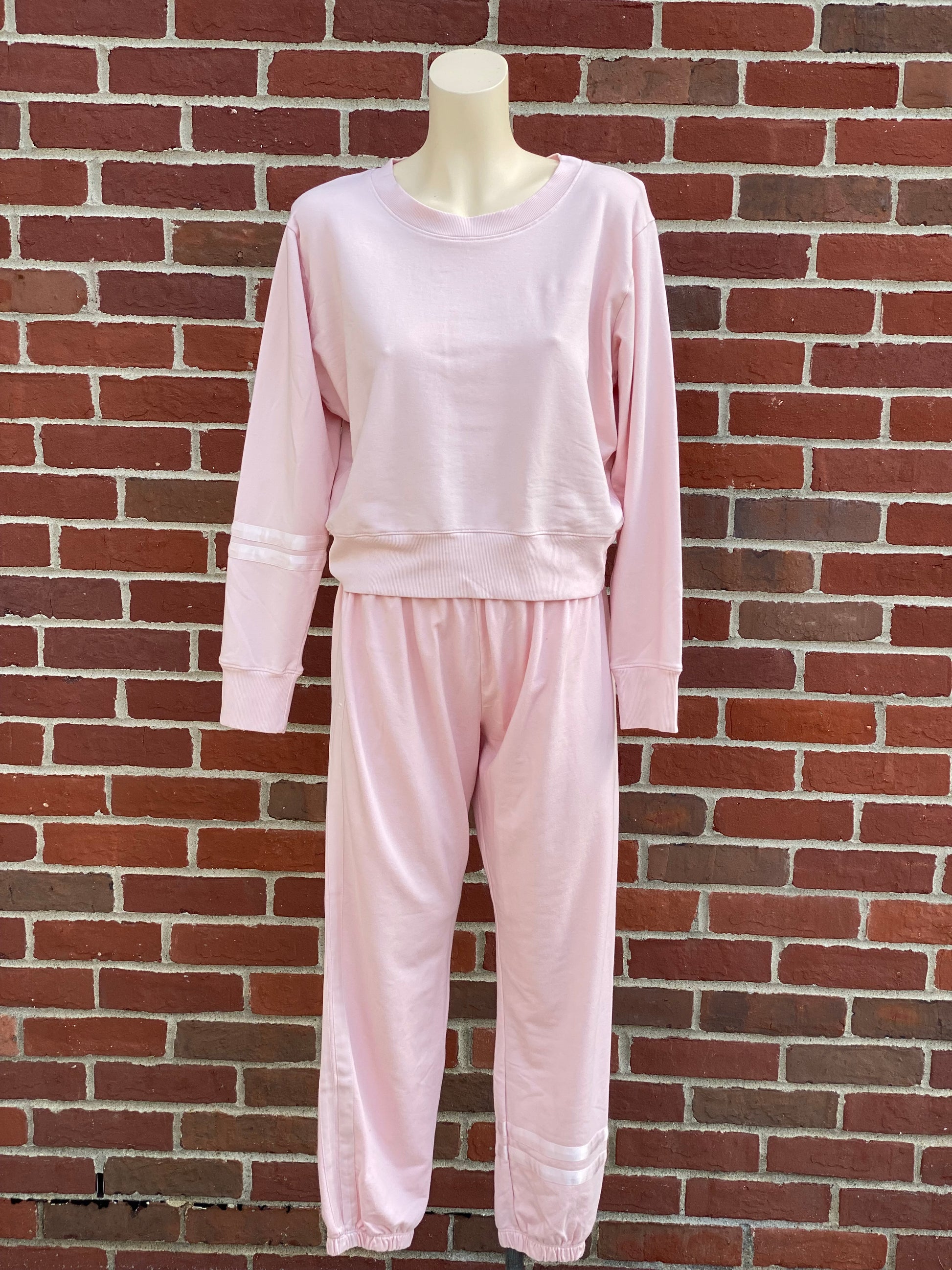 PJ Harlow's Sammie crewneck French terry sweatshirt features two satin stripes for a fun and sporty look.
